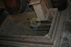 On peut constater également sur la photo ci-dessus que le tour en bois qui entoure les deux meules est de forme hexagonale, en fait, il existait trois modèles de contours bois, le rond, l’hexagonale, le carré.